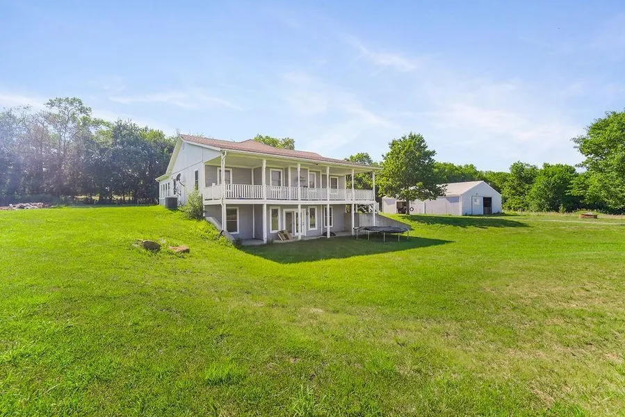 Country living at its best! This Ranch home sits at the back of *50 SECLUDED ACRES* on blacktop and just 5 minutes from town! Pasture and hay ground are fenced and cross-fenced with a 40x50 Shop/Barn that includes 3 horse stalls and a concrete floor. There's room to grow with 4 bedrooms and 3 baths on a full walkout basement w/extra deep 3-car attached garage. Sip your morning coffee and enjoy the sunrise across the huge front covered deck. Step inside to an open floor plan with tons of natural light and gleaming hardwood floors w/gas fireplace. SS appliances with solid oak cabinets in the kitchen. Spacious Master Suite includes large walk-in closet with a double vanity in the private bath. 3-season room with hot tub. Light and bright finished basement features a 2nd family room, 3rd bath, 4th bedroom, a large office/5th non-conforming bedroom, safe room, plus a bonus room that had previ...