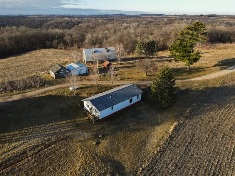 Discover rustic charm in central Crawford County with this country home and acreage. This charming home sits on 2 +/- acres, complete with a detached two-stall garage and a large historic barn. The home features approximately 1,400 square feet of living space, including 2 bedrooms and 1.5 bathrooms. Original hardwood floors exist in approximately half of the home. The kitchen and dining room offer an open concept, ideal for day-to-day living as well as entertaining guests. The living room also boasts an incredible view of the Crawford County countryside! Each of the bedrooms boasts spacious closets, offering ample storage for all your belongings. The structure itself is a mobile home which has been added onto to create additional living space. Recent updates include a new furnace, a new water heater, a newer steel roof, as well as a reinsulated attic.