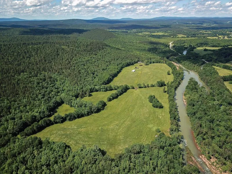 This is one of the most amazing overall recreational properties I’ve toured in this part of Arkansas. It sits behind a locked gate at the back of a dead end road which offers absolute seclusion yet is only 4 tenths of a mile off of Highway 71. Two sides the property offers an unprecedented 1.2 miles of Fourche LaFave River frontage and the 3rd side offers nearly 1 mile of Ouachita National Forest frontage. Deer and Turkey hunting are top of mind as I saw several deer and a large flock of turkeys while touring this property, and I also know there is a lot of black bears that roam the mountains in this area. The property offers several great areas for food plots. The views and unlimited access to the River are just spectacular. Canoeing, kayaking, floating and wading are just the tip of the iceberg when it comes to the recreational opportunities this much river frontage offers. Fishing for Small Mouth Bass, Large Mouth Bass, Blue Gill and Catfish is a whole other aspect of recreation to be enjoyed at any time. Hiking, horse back riding and exploring the vast amounts of adjacent National Forest are all bonuses this amazing property has to offer. There are two houses on the property. They could both be used for full time residents, or could be rented out for weekend overnight trips and vacationers to provide a solid stream of income. Additionally, there is roughly 50 acres of improved hay meadows that could also be rented out for a secondary income as well. The large barn is in great shape with nearly 2/3 of it insulated with concrete floors, a hot water heater, horse stalls and a wash bay. It could be a great place to manicure your horses and to keep you recreational equipment. This property truly is a one of a kind in many ways. The setting, the river, the national forest, two houses, large barn, manicured meadows, amazing views of the mountains in the distance and the peace and quiet that comes with it. This is a must see and you truly need to see it in person to be able to take in all it has to offer. Just wow. A property like this may not come available again for years to come. Please give me a call to come out and take a look for yourself!