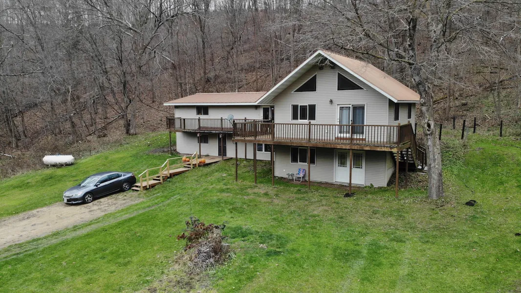 This is your chance to get out of town and start your country living! This nearly 2,700 square foot, 3 bedroom, 2 bathroom home is ready for you to move in! The master bedroom has a large walk-in closet and a balcony for you to enjoy. In the kitchen, you will have the privilege of cooking on the luxurious Wolf stove. All cabinets in the kitchen are custom built. In 2006, there was a 24’ x 24’ addition added to the home. The upstairs is utilized as a great room/living room and there is a bedroom on the lower level. One of the most attractive parts of this home is the large deck that stretches across the entire east side of the home. This will be perfect for watching sunrises in the mornings while drinking coffee. In addition to the LP furnace, there is an outdoor wood burner that is used to help heat the house in the winter months. There is also a wood-burning fireplace in the basement for additional heat. Another great feature of this property is the large 72’ x 40’ metal building. This is perfect for storing equipment, vehicles, and tools you will need while out on the property. This property is in a prime location for excellent deer and turkey hunting. None of the lands is enrolled in any government program allowing you to manage the land the way you want. There are approximately 25 acres of tillable land which is currently not being farmed. This could be rented out for income or converted into food plots for wildlife. There is a small stream that runs through the property to provide a great water source for wildlife throughout the year. If you are interested in taking a look at this property, give me a call to schedule your private showing!