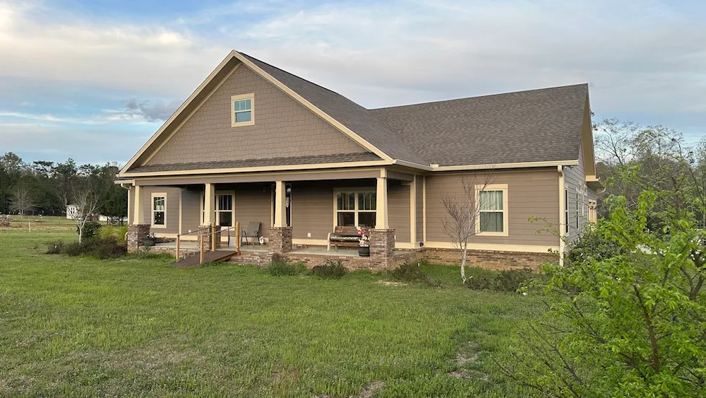 Nestled in the heart of the picturesque town of Ashford, Alabama, is a rural haven that beckons those seeking a tranquil retreat and a slice of South Alabama paradise. Upon entering this remarkable property, you'll discover a harmonious blend of modern comfort and rustic allure, making it a truly unique and inviting space. At the heart of this enchanting property stands a spacious 4-bedroom, 2-bathroom home (approximately 2650+/- sq ft.) that exudes warmth and character. From the moment you step inside, you'll be greeted by a cozy ambiance, with a tastefully designed interior that harmonizes seamlessly with the surrounding natural beauty. Country living in this custom beauty with covered front & back porch w/stained 1x6 tongue & groove ceiling, open floor plan with moldings, beautiful kitchen w/soft close drawers & cabinets, pull-outs, chimney style vent hood over a gas stove, granite co...
