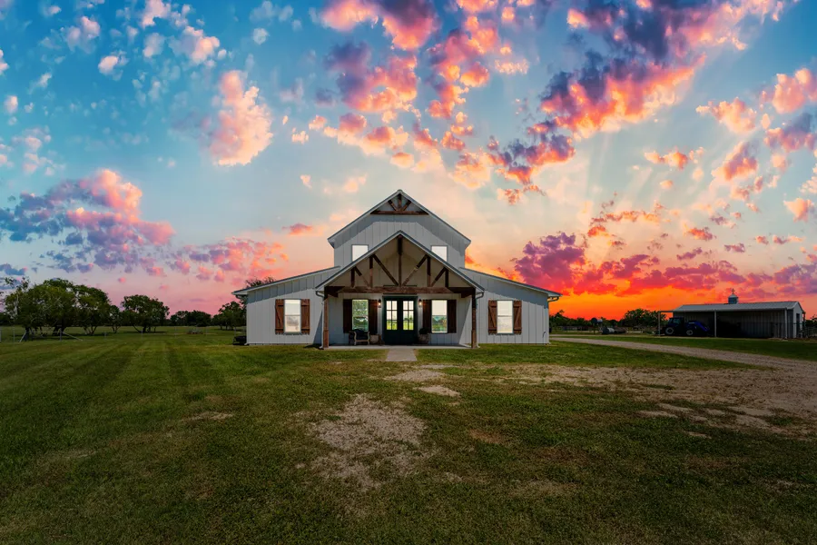 Welcome home to 9740 County Road 264 zoned to highly desired East Bernard ISD! This property features a custom home built in 2019, a 1,200 SF barn w/ two 40'x20' awnings and small air conditioned space as well as a turn key roping arena all on 40acres! The property boasts galvanized net wire fencing, two water wells, scattered trees and a pond. The custom home offers 4bedrooms, 3 bathrooms, 1 half bathroom, game room, home office & huge laundry room with countertops, cabinets and a sink! The island kitchen features quartzite countertops, farm sink, gas cooktop, double oven, built-in refrigerator, lots of cabinet space and room for bar seating! The family room boasts a soaring ceiling, wood-look tile flooring and a double sided gas fireplace. End your days in the primary suite. The primary bathroom offers dual sinks and an over-sized walk-in shower! Upstairs you'll find a bedroom, game ro...