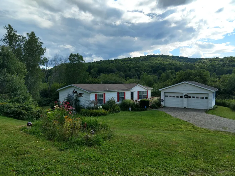 This IMMACULATE manufactured home sits on nearly 45 acres of OUTSTANDING land. The home offers complete privacy with a long driveway and features beautiful views of the quiet surrounding countryside. The land is both open and wooded and can be used for a number of uses including farming, hunting and recreation. ATV trails throughout with a nice year round stream running through the property. The home is VERY well kept and in like new condition with comfortable CENTRAL a/c. Offering three bedrooms, one with en suite bathroom. Large Country Kitchen with sliders leading out to a wrap around deck with composite decking. Little to no maintenance here! Washer and dryer included in the utility room and most furnishings for a truly turn key property. Plenty of storage for vehicles and yard equipment in the two bay detached garage. If you are into hunting, there is no better place with open hay fields, thick apple orchards and hardwood ridges full of deer and turkeys. Truly an outstanding piece of land here! All of this makes for the perfect budget recreational get-a-way, retirement or second home property. Do not hesitate and call the Listing Agent today!