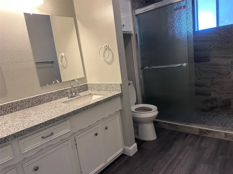 Spacious den with high ceiling and fireplace. Master bath has walk in shower. Large master bedroom and walk-in closets in all bedrooms. New tile floor, showers with designed backflash, rain classes, new granite bathroom sinks and granite countertop, fresh paint garage & brand-new roof. Never flooded.