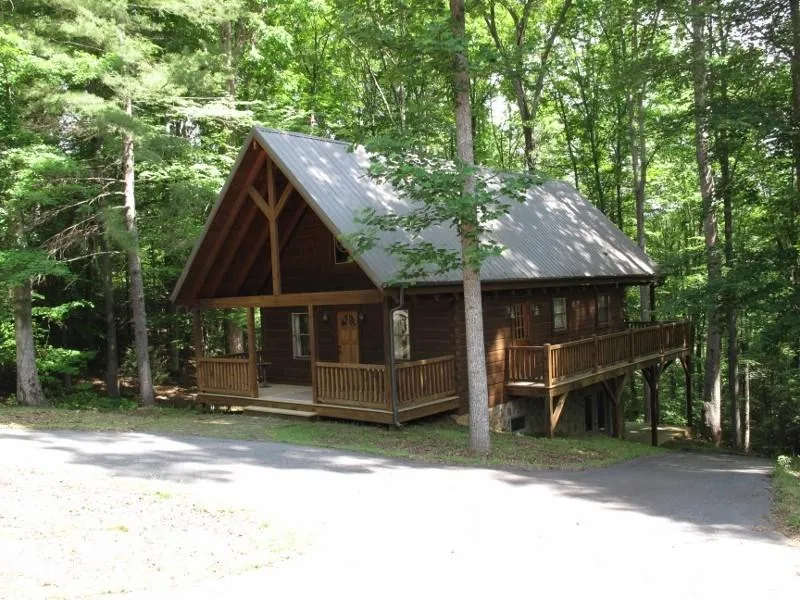 Charming cabin has master bedroom on main floor with exit door out to extra large covered back deck for entertaining or overlooking nature. Short walk to stream at rear of property. A sleeping loft that overlooks the open living/dining area is on upper floor. Open floor plan with hardwood floors and stone fireplace with gas logs. High end Kitchen Aid appliances. Miele washer and dryer. Covered front porch and deck walk way. Unfinished basement with built in plumbing. Underground utilities. Paved driveway.