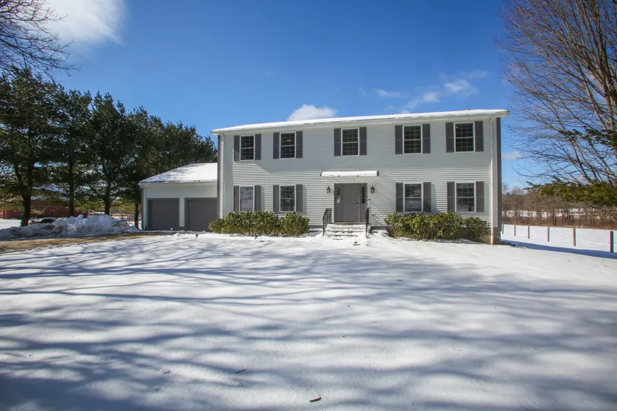 This contemporary Saltbox home offers 2,576 sq ft of living space and sits on a flat, dry, level acre with views of open fields and mountains, just five minutes from Great Barrington. A perfect country escape, the home is move-in ready, featuring a vaulted ceiling in the living room with a gas fireplace, and glass doors that open to a spacious deck facing west, perfect for enjoying stunning mountain views. It includes a primary suite on the first floor with an ensuite bath, another primary suite with an ensuite bath on the second floor, a 3rd bedroom and a full bath on the 2nd floor. Additional highlights include a first-floor laundry room, a half bath, and an attached two-car garage. Don't miss out on this turnkey gem !