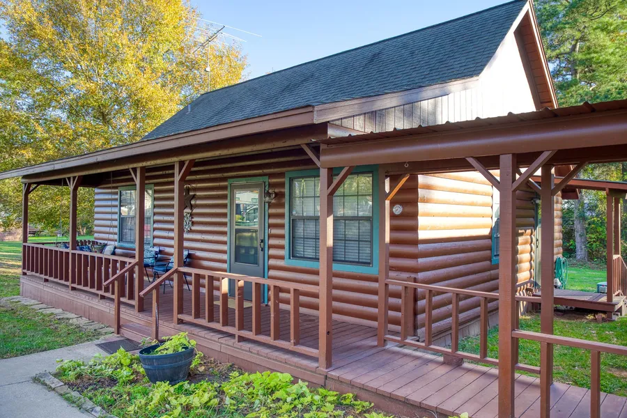 Cozy log cabin on 2 lots with access to Lake Palestine! Welcoming front porch with swing invites you to sit a while and enjoy the quiet lake neighborhood of Lollipop Landing. Home offers open kitchen, dining, & family room layout with towering Aspen wood ceilings. Two bedrooms downstairs plus full bath and utility closet. Stairs lead to the loft (currently used as a bedroom) & full bath. Home is all electric and all appliances remain with purchase along with some furnishings. Outside you will find a carport with additional storage along with a covered RV and/or boat storage. Access to Lake Palestine recreation is convenient with neighborhood boat launch! This home would make a fun second home or investment property!