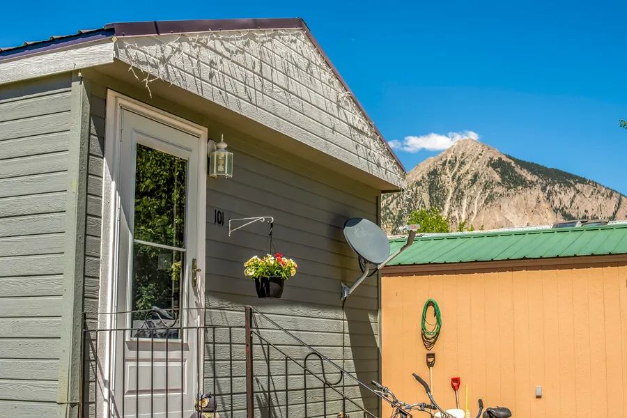 101 Teocalli Avenue is a cozy 3 bedroom, 2 bath, 1,162 square foot home situated on a corner lot in the sought after "upper west-end" of Crested Butte. The single-family residence is a few blocks from Elk Avenue, and is a short distance from Peanut Lake Road, providing easy access to the Lower Loop trail network for your use year round whether cross country skiing, biking or hiking. The free ski shuttle system is close by to get you up to the mountain or to Gunnison depending on what you are up to that day. This Mobile Home was specially built for mountain living with 2 x 6's for the roof and 2 x 4's for the wall with a solid foundation supporting this structure. There are 24 metal bands anchoring this mobile home to the overbuilt foundation. NO HOA fees, two off-street parking spaces on a concrete driveway. This corner lot of land is included in the purchase and accounts for the major value of this property. This is one of only three lots in the park that allows 16' wide by 80' long mobile homes. This one of a kind property has been well maintained and has room to expand with approval from the Town of Crested Butte. Scheduling a showing is easy; we will accommodate short notice showings if possible.