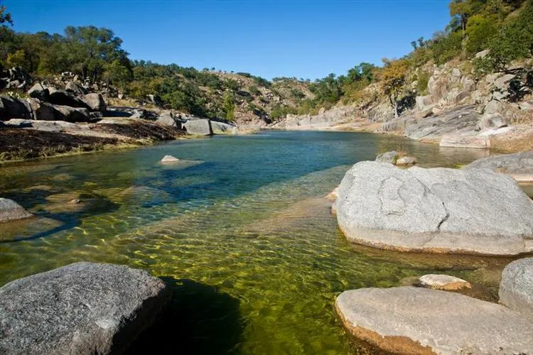 LAND: This part of the Texas Hill Country is well known for its rugged, scenic beauty, and this ranch takes that aspect to the limit. Were talking about almost 400 of relief from top to bottom, with rock cliffs, large hardwoods and dramatic vistas of Enchanted Rock and the granite mountains to the north available at numerous locations. Two major, non-Crabapple canyons run from SW to NE thru the ranch, and these canyons have lovely, smooth bottoms populated with large elm and live oak trees, bisected by spring fed creeks that hold water much of the year. Again, rock cliffs, spires and slabs are present for viewing pleasure, but not prohibitive to vehicular travel.
