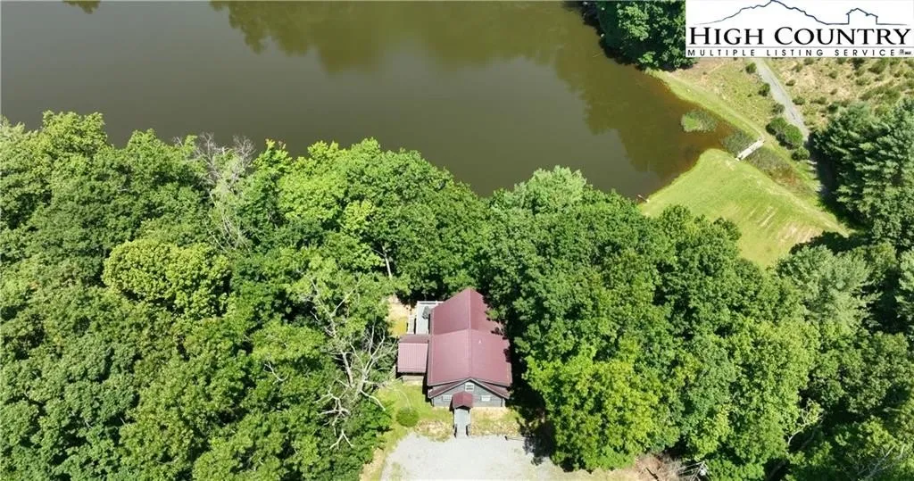 Over 2700 Sq feet of LAKE FRONT LIVING. Fenced in yard, 2 decks, fully furnished and perfect for vacation rental or full time living. Located on Penny Lake in Powder Horn Mountain a gated community in Deep Gap. (Please note this is a small lake, no motorized vehicles just kayaks and canoes and paddleboats) Fishing is permitted, catch and release. Main floor includes a full bedroom with Q bed, mini split and central air, flat screen TV and nice size closet. Full bath on this level with tub/shower combo. Kitchen is a unique teal color with lots of flashy accents that wow guests all the time, stainless steel appliances, Bump out living room, wide open great room with TV seating area and seating to enjoy the gas fireplace. Hardwood floors throughout. Cathedral Ceiling. Upper floor is Master suite with King bed, flat screen TV, and private bath with HUGE walk in shower that includes rain s...