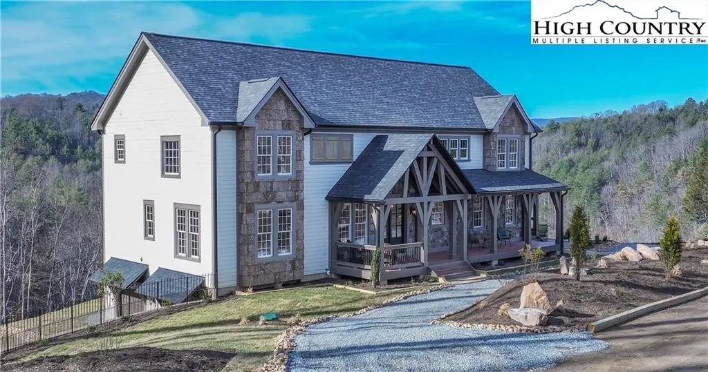New Construction! C/O in hand. 4 Additional development opportunities are available on Autumn Leaf Way - Lot 53 Autumn LEaf Way MLS #259642 - Lot 55 / 485 Autumn Leaf Way MLS #259488 - Lot 56 Autumn Leaf Way MLS #259488 - Lot 58 / 403 Autumn Leaf Way MLS#259439. Please reach out to the listing agent for subdivision plat map, pricing, and availability. Discover this a one-of-a-kind, custom-built craftsman masterpiece perched atop the coveted Hidden Mountain subdivision. Residents enjoy unique access to the New River, scenic hiking trails, and a community pavilion designed for gatherings and outdoor dining. This luxury 3-bedroom, 3.5-bath, 3,901 sq/ft mountain retreat is fully trimmed from top to bottom—every detail thoughtfully crafted. The great room welcomes you with white oak floors. You will find exposed reclaimed heavy timber beams and reclaimed tongue-and-groove ceilings throughout the first floor - Great Room, Kitchen, and master bedroom. The gourmet kitchen is a showpiece, featuring granite countertops, soft-close cabinets, stone backsplash, a custom craftsman vent hood, copper sink, and a premium Z-Line appliance package. Designed for comfort and ambiance, the home offers four fireplaces—located in the great room, primary suite, primary outdoor living area and general outdoor living area. The master suite impresses with a tray ceiling, double crown molding, reclaimed tongue-and-groove ceilings, reclaimed heavy timber beams, and its own fireplace. The spa-inspired primary bath includes a curbless tiled shower, stand alone copper tub, dual farmhouse vanity with soft-close drawers, and a fully trimmed walk-in closet. A beautiful 15ft. stone wall leads to the guest suites upstairs, where you’ll find two spacious bedrooms, loft, library/study, and two well-appointed guest bathrooms featuring crown molding, tongue-and-groove ceilings, with tile surround, farmhouse vanity, and ceiling fans in each bedroom. The third floor can function as another living space, office, or bunk/playroom. Basement offers a finished vestibule, 2 car garage, and over 1,000 sq/ft of unfinished space that could be used for storage or finished at a later date. Relax on the covered deck or by the firepit and take in the serene mountain views, or enjoy a short drive to charming downtown West Jefferson.
