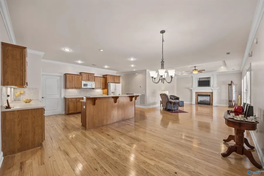 Enjoy convenient living in coveted BELMONT PLACE. Inside, enjoy FRESH PAINT, NO CARPET, OPEN CONCEPT living w/ a massive kitchen, tons of cabinets/countertops & pantry. A spacious DR & OFFICE, w/ french doors, are right off the kitchen. The LR offers a cozy gas fireplace & sun filled windows overlooking a comfortable COVERED & OPEN PATIO. The master bedroom offers a spacious room with full ensuite & large closet. A 2nd BR w/ full ensuite completes the tour. Outside, enjoy a 2 car garage & carefree living w/ yardwork completed for you. With easy access to County Line Rd, Hwy 72 & I-565, you are minutes from Athens, Madison & Huntsville.