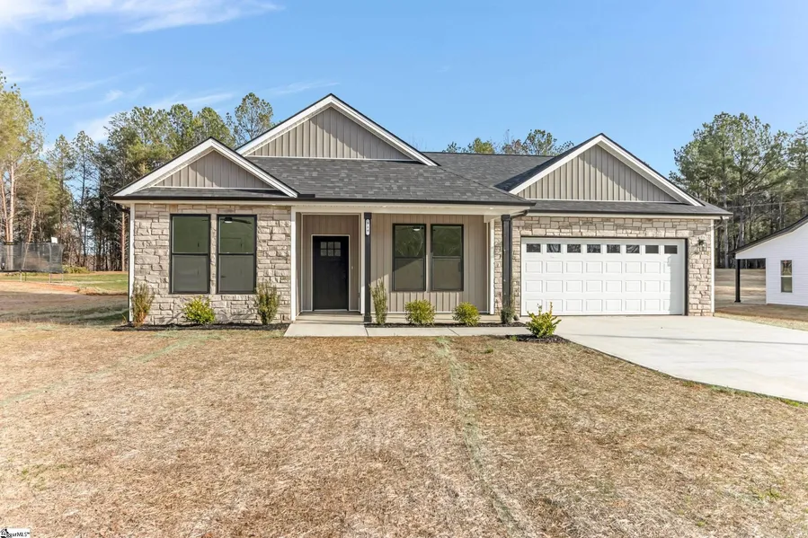 Welcome to this beautiful new construction home where high-end upgrades and thoughtful design offer comfort, convenience, and modern style throughout. The open-concept living space features dramatic 10-foot ceilings and luxury vinyl flooring, no carpet and easy maintenance. The owner’s suite is a private retreat with 10-foot tray ceilings, a walk-in closet, and a primary bath with dual vanities. Modern ceiling fans are installed in every bedroom and the main living area. The kitchen is fully equipped with a designer backsplash, ample cabinetry, and modern appliances, including the refrigerator. Perfect for cooking or entertaining with both style and function. The living area features a large screen fireplace, creating a warm focal point. The garage includes extra shelving for additional storage, showing that every detail of this home has been carefully planned. Enjoy a level, large backyard ideal for outdoor activities, gardening, or summer gatherings. Property has its own well for added convenience and savings. No HOA. Move-in ready with quality finishes throughout, don’t miss this opportunity.