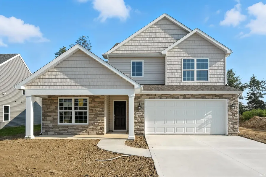 ** Open House Saturday 2/21 12 - 2 PM ** Welcome home to this 4BR/2.5BA 2 story home in Majestic Pointe. This new build by Majestic Homes offers over 2276 sq ft and has a great open floor plan. Once inside you will notice the formal dining room boasting a nice tray ceiling and lighting fixture. It leads into the large open kitchen which provides an abundance of cabinet and counter space with a raised breakfast bar. It also has stainless steel appliances and a generous sized pantry. Easily entertain family and friends from the kitchen as it is open to the vaulted great room. Large windows allow for bright natural light to shine through making the neutral paint tones stand out. the main floor master offers a great place to relax at the end of the day. It has its own full bath. Travel out to backyard and grill out on the back patio. This open space is a blank slate and ready for you to make it your own! The oversized 2 car garage is perfect for additional storage along with your vehicles. The up and coming Lakes at Woodfield neighborhood is only a few minutes drive to shopping, restaurants, entertainment, Paarkview Dupont, I469 and more! You will not be disappointed in making this brand new build your new family home today! Photos are an example of a finished Herrington floor plan. Property will have upgraded quartz countertops in the kitchen and baths.