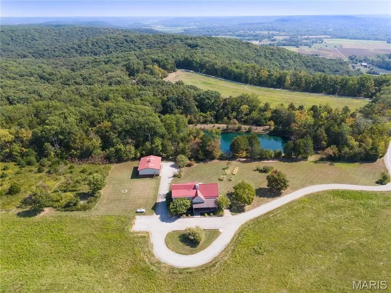 Absolutely gorgeous setting for this wonderful country home on 42 acres with a 1+ acre stocked lake, wonderful guest cabin/studio & 40x30 Morton Building barn. Less than 15 minutes to Hermann wineries & shops or on your bike at the Katy Trail in 10 minutes! Extraordinary custom timber frame home with beautiful views of woods, fields & lake. Original owner/architect designed; the home offers cozy rooms sitting by the 3 fireplaces (one on each floor). Updated kitchen boasts 2 pantries, one walk-in, quartz countertops & updated appliances. The primary bedroom offers a spacious walk-in closet & renovated bath. Enjoy a beautiful loft area (which could be 4th bedroom) & children's play room/library area. The open design offers plenty of light with large windows & sunny views. A finished lower level (included in total sq/ft) offers a bedroom & full bath, family room & plenty of storage. New HVAC 2022. Enjoy a cozy cabin by the lake, 2 docks, fishing and hiking! Duplicate listing of 25023431 Suitable for Bed/Brk