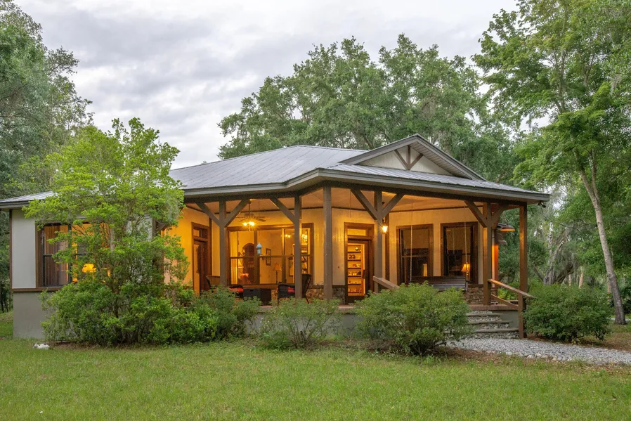 The most breathtaking, hidden estate that captures all of the beauty and charm of classic Florida. The crowning feature of this property is the meticulously maintained 2,169 SF, 3BR/2BA craftsman style home that is anything but average. Throughout the house, you will notice features that set this apart from any home youve ever seen before wide, distinctive trim work, transom windows over the interior doorways, over-sized windows in every room filling the home with natural light, and a distinctive design that boasts functionality and character. The eat-in kitchen is bright and open with hardwood cabinets, quartz countertops, gas range and double pantry closets. The 7.5 acres that surround this custom home are truly a rare find with the 32 grandfather oaks, stately cypress trees, lush ferns and a private walking trail that showcases the natural beauty of the land. Plenty of outdoor sp...