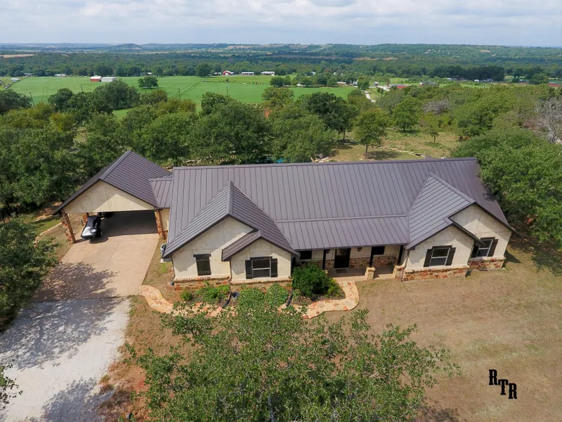 This beautiful 3 bed/2/2.5 bath home built in 2011 has multiple facets to offer that you don't want to miss out on! View over looking Valley Below. This ranch home is located on 22.015 acres with 2900 sq. Ft. Custom Home to offer you the perfect welcome home. It is just 63 miles southwest of Ft Worth, 90 from Dallas, and 89 from Abilene. This remote ranch comes equipped with 2 barns a tank and spacious arena and to top off your luxuries, a full-size pool. Inside it only gets better with a Viking setup in the kitchen with a double oven, gas fireplace, storage attic, game room and office. The home also has a 2-car carport and right at 800 square feet of porch for your leisurely activities! The land is fully stocked with stunning oak trees you'll admire for days to come! {Brock ISD}