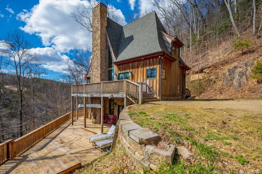 This home is truly one of a kind. It is known as Peace Lodge, and when you get here, you will not be disappointed! If you have an appreciation for excellent architecture, this home is a must see! This is upscale mountain living at its finest. This Gothic cabin was constructed with exotic woods, and the highest quality materials. You will be astounded with the documented construction process for it. You are deeply secluded with a mountainous 27 acres that is vast in wildlife, beautiful wildflowers, and mountain laurels everywhere. There are steps that lead from the house down to the beautiful bold Big Reed Island Creek frontage. You can go kayaking, canoeing, trout fishing, or just sit and enjoy the water. The home is quality inside and out. The upstairs master suite has an airbath tub. The downstairs suite offers an aromatherapy steam shower as well. This 3 level retreat offers a bedroom...