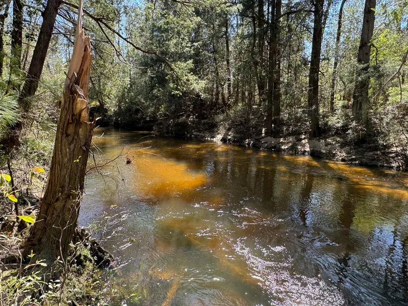 Flomaton, AL - 232 FT OF LITTLE ESCAMBIA CREEK FRONTAGE! 5 acres peacefully wooded featuring a cozy tiny cabin & READY TO GO home site with underground power, water & its own septic! Welcome to your dream retreat with a clear driveable path to the banks of Little Escambia Creek! There are 2 septic systems, one for the home site & one for the cabin down by the creek. The cabin has 140 sq.ft. heated/cooled with a 1 bed/1 bath layout & a 200 sq.ft. screened in porch furnished with an outdoor sofa, 2 chairs & Stainless steel table with Blackstone griddle. Enclosed in the screened porch is the full bath with a spacious 48 shower with a rain showerhead & a pedestal sink. Coming furnished with indoor/outdoor furniture, dishes, linens & kitchenette with mini fridge, microwave, coffee maker & sink, this cabin has potential to bring in income with AIRB&B or perfect for living easy while you build your new home! Hand-scraped laminate floors & good insulation, with R32 in the ceiling, R13 in walls & R19 under the floor, ensure year-round comfort & energy efficiency. The separate home site already prepared for a larger home or mobile home features a 12x24 shop with power, water & includes a washer/dryer for ease of using at the cabin or future home, 100 amp panel, outlets every 4 ft, led lights & outdoor led motion flood light. Venture down to your creekfront oasis where you can enjoy secluded creek frontage lounging in the covered swing, taking a dip in the creek accessed by convenient steps, or having picnics & gatherings under the nearby 12x12 covered shade structure. The beauty of this creek is the absence of public access points ensuring a peaceful environment for kayaking or tubing. Enjoy southern evenings around an upgraded 3 ft custom metal fire pit complete with 4 Adirondack chairs & a covered wood storage area stocked with seasoned firewood. A 16x16 equipment shed offers add'l storage. Your own private drive with a locked gate are an added bonus! Call now!