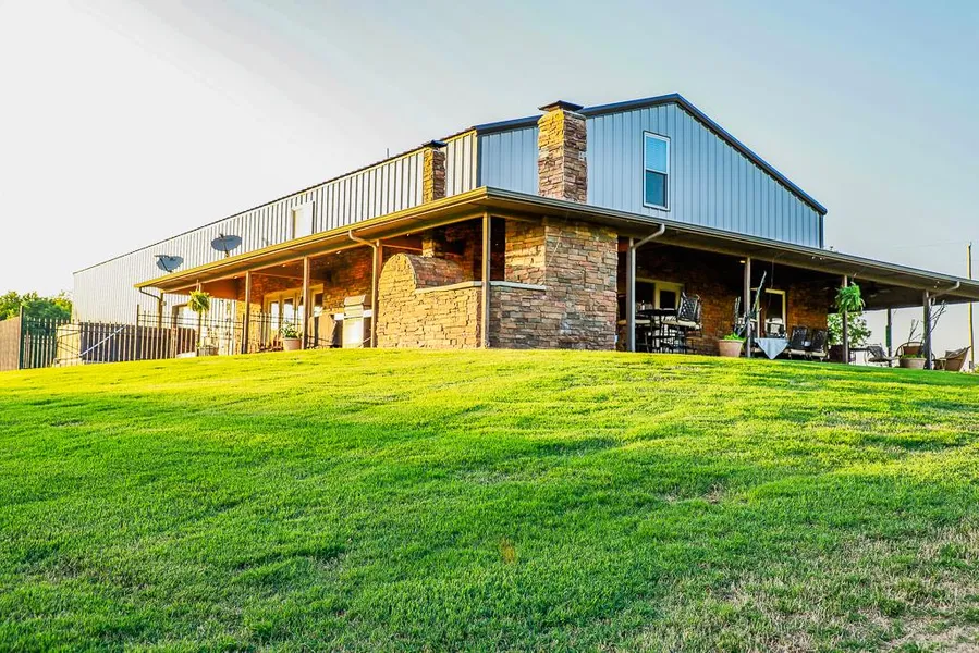 Peaceful 160 acre country property with 3 bed, 2 bath open layout metal home and adjoining shop. House is situated out of sight of neighbors or roads ensuring ultimate privacy. The kitchen captivates with Viking and Kitchen Aid appliances, granite, and under counter LED lighting. Sizable Master Bedroom with sitting area, French doors that lead to private courtyard, Master Bath with walk in shower, spacious walk in closets in every bedroom. Cozy loft with wet bar, television, under counter microwave and refrigerator. Wonderfully large upstairs bedrooms have beautiful views of the property as well. Custom cabinetry grants ample storage in every area of the home. A wood fired pizza oven highlights the outdoor entertaining area. Beautiful views from three sides of the nearly 1,300 sq ft porch offer daily wildlife sightings. The charming guest house will impress your friends as they enjoy the deck overlooking the incredible pond stocked with Bass. ATV trails guide you throughout the entire property providing the opportunity to see some of the abundant whitetail deer, turkey, and many species of birds. Vivid colors enchant all year long from the evergreens, native grasses, and Oklahoma red dirt.