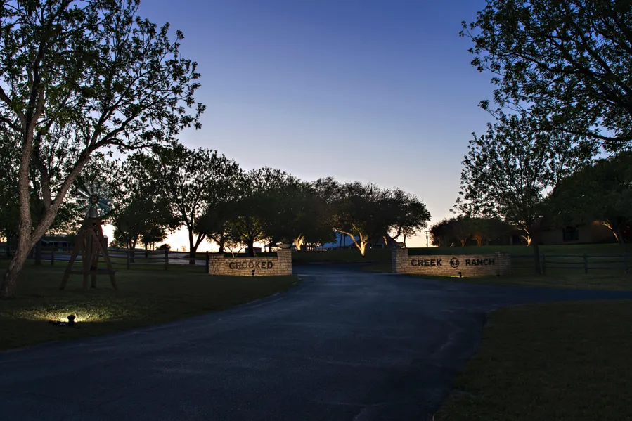Crooked Creek Ranch offers a large scale of camp, equestrian, hunting and entertainment potential. This domain is established on 1,000 acres of beautifully diverse topography. The Rolling Highlands blend into the fertile pecan bottoms in which Bear Creek meanders through. Overlooking Bear Creek, the peaceful opulent Main Lodge nestles perfectly amongst large oak and pecan trees.. Within Bear Creek, the area also offers a beautiful park and active skeet range. Traveling up the hill, the expansive covered arena and event center, with commercial kitchen, provide endless entertainment options. Throughout the ranch, accommodations are provided for upwards of 65 Guests. The possibilities are immeasureable with amenities to meet everyone's desires. All within 15 min to the closets jet strip.Call Mike at 512 784-3484 for your private showing.