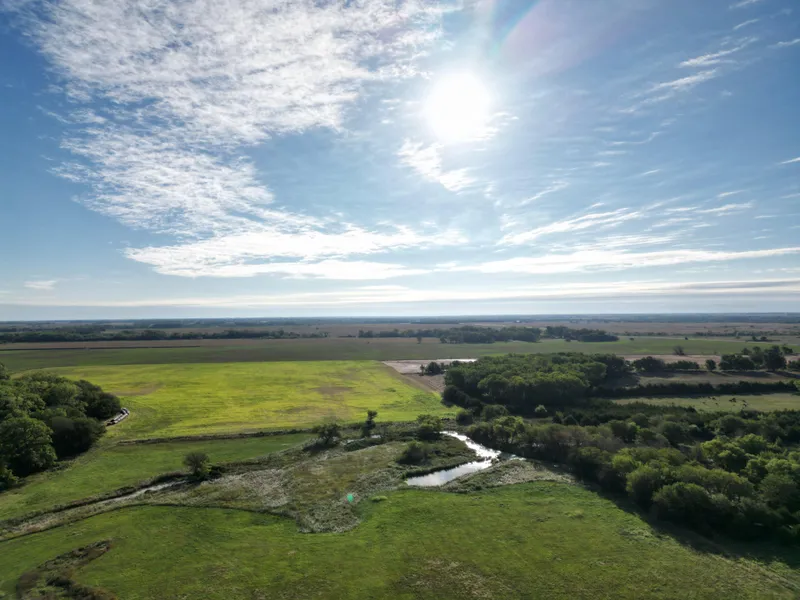 This tract, known as "Bill's 80," offers a unique blend of rural charm, recreation, and practical living on 78+/- acres. The property features a spacious 40'x60' shed built in 1995, which includes a 14x24 apartment with a loft bedroom. Equipped with modern amenities like heat, air conditioning, sewer, and a well, the living quarters provide comfort while surrounded by nature. The land consists of 35 acres of tillable cropland, perfect for farming, while the remaining acreage is a mix of native grasses and mature trees, creating an ideal habitat for wildlife. A cluster of fruit trees is conveniently located near the shed, adding a touch of homestead appeal. Natural water sources are present, waiting to be developed, making the property not only a serene retreat but also a haven for recreation, hunting, and outdoor enthusiasts. (This tract will sell as 78 Acres x the final bid to establish a purchase price.)