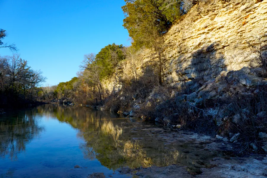 LAND FEATURES: Gradual elevation changes that provide easy creek access on the South boundary with more dramatic elevation changes of roughly 30 ft. near the north boundary resulting in beautiful views from the cliffs. The West portion of the property is wooded with more open areas toward the cul-de-sac.