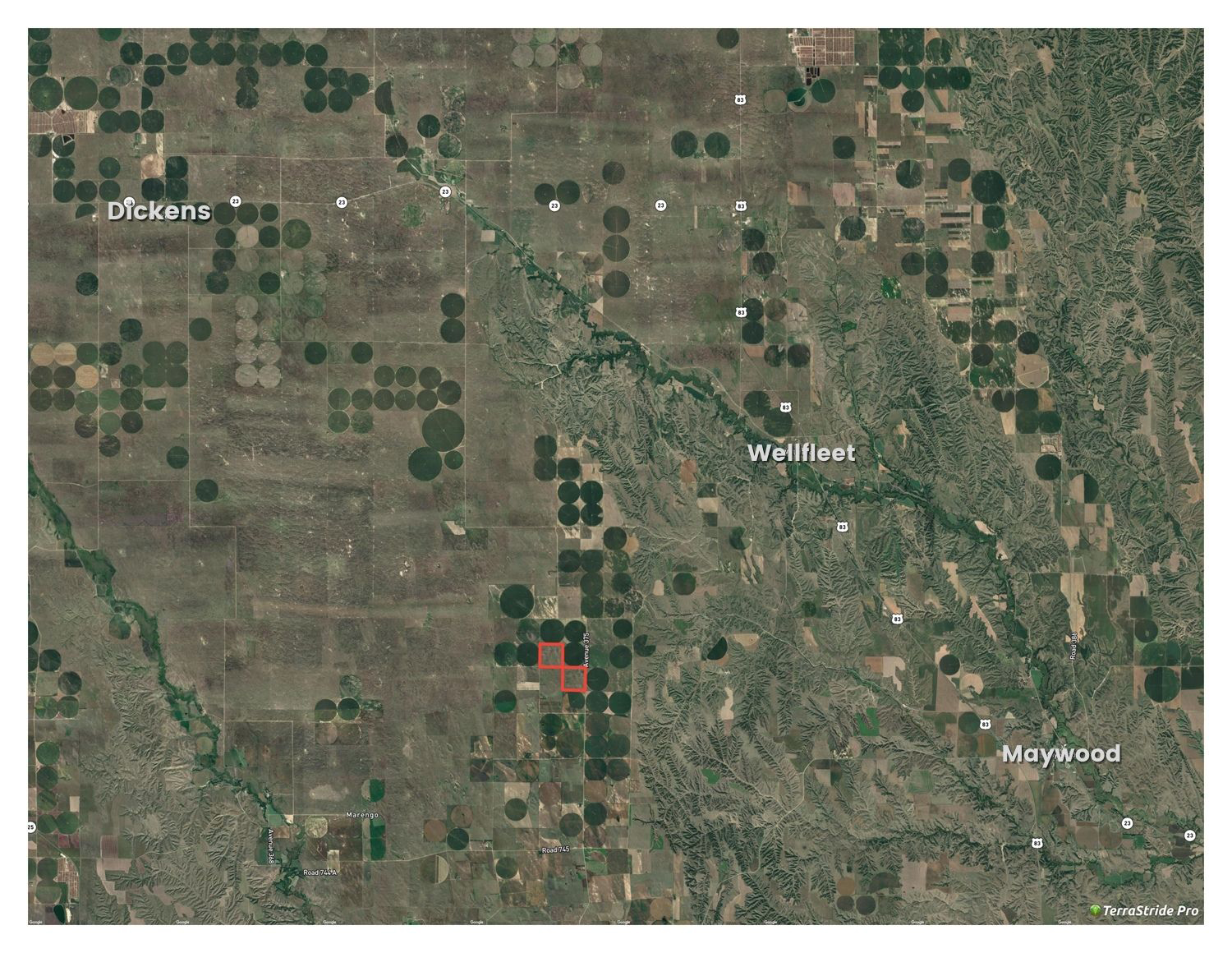 From Maywood, NE travel west on Highway 23 for 1 mile until you reach Highway 83. Turn right and head northwest for 1.3 miles and turn left on Road 748. Travel 4.5 miles until the road comes to a Y. Stay left to merge onto Road 750. Continue on Road 750 for 4 miles until you reach a T in the road. Turn left on South Hayes Center Road and travel .5 mile until the road comes to a Y. Stay to the right to begin travel on South County Line Road and continue west for 1 mile. Then turn left and head south on Avenue 375 for 2 miles, then turn right on Road 749. Tract 2 will be on the south side of the road. Continue to travel 1 mile west on Road 749, Tract 1 will be on the north side of the road.