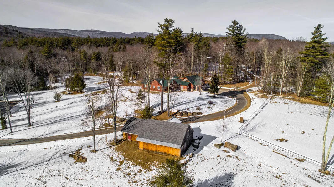 Looking for privacy and a spot to enjoy the natural world around you? Sited on 27 acres, this rustic and cozy log home sits well back into the property affording wonderful views of the mountains and private pond. The home gleams with the warmth of wood and has a 6 yr old metal roof and new propane hot water furnace. A large room off the side door has a staircase leading to an equally spacious finished area over the garage, with a bath and small balcony. Stonework in the dining room plus log accents throughout the house create a lodge-like feel. A family-sized Azek deck off the kitchen is the perfect barbecuing area summer or winter. A large window in the living room looks out over the lawn and pond, a great spot to sit and take in the view. The master bedroom has a cedar closet and full bath with recent updates. Two more bedrooms and a full bath complete the first floor. Upstairs the lo...