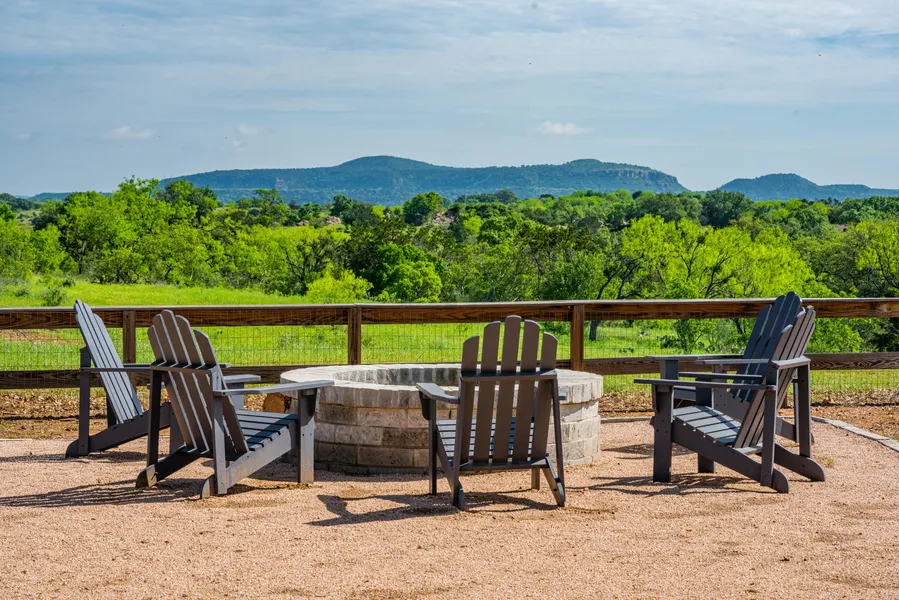 The well-managed road system leads up to the main gathering hub of the ranch where you'll find a Lake Flato inspired design, fully furnished 3 bedroom, 2.5 bath contemporary Dog-Trot style home with additional guest homes. This home features a low maintenance exterior with large windows and numerous entertainment porches accentuating the massive views across the countryside. Every detail was carefully considered in maximizing the stunning 360* views and surrounds while providing an upscale style for comfort and efficiency.
