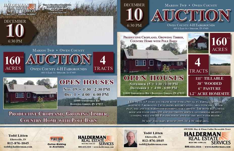 Auction Location: Owen County 4-H Fairgrounds: 400 S East St, Spencer, IN 47460
