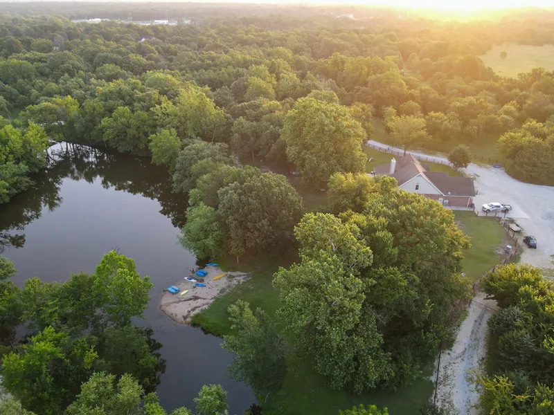 -Scattered trees provide shade for livestock and thick timber for deer and turkey