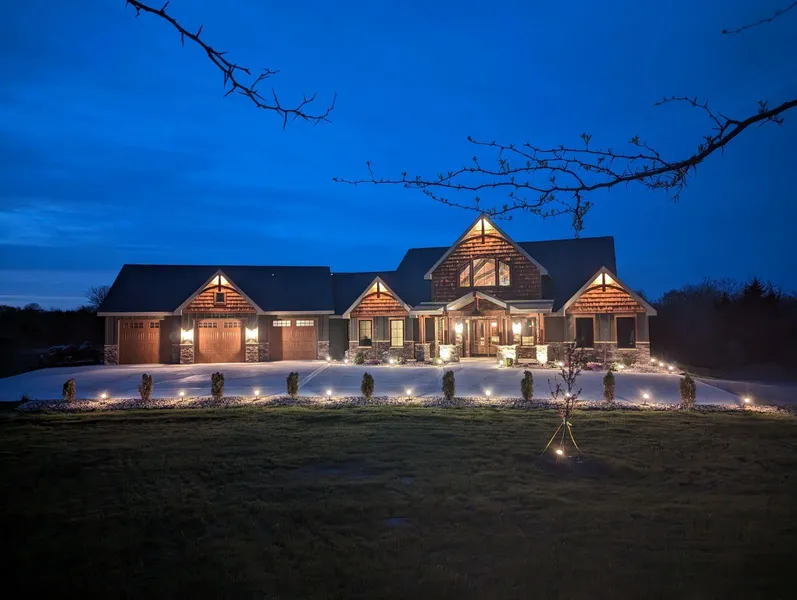 Custom built home with 6.05 acres m/l and a pond, is practically brand new. This home is beautifully crafted with custom cabinets and stone work. The primary bedroom has a door that opens to a deck with a view overlooking the pond and it has a primary bath with a walk-in stone shower and 15.5 X 10.6 walk-in closet. On the second floor is a 18 X 11.6 room that could be used as an office with a beautiful view out of the large windows. There is a stone fireplace in the living room made for an electric insert, there is currently not an insert inside the fireplace but the sellers allow $1000.00 credit to the buyers to to choose the insert of their choice. Three car attached garage for plenty of parking. The wildlife out there are plentiful.