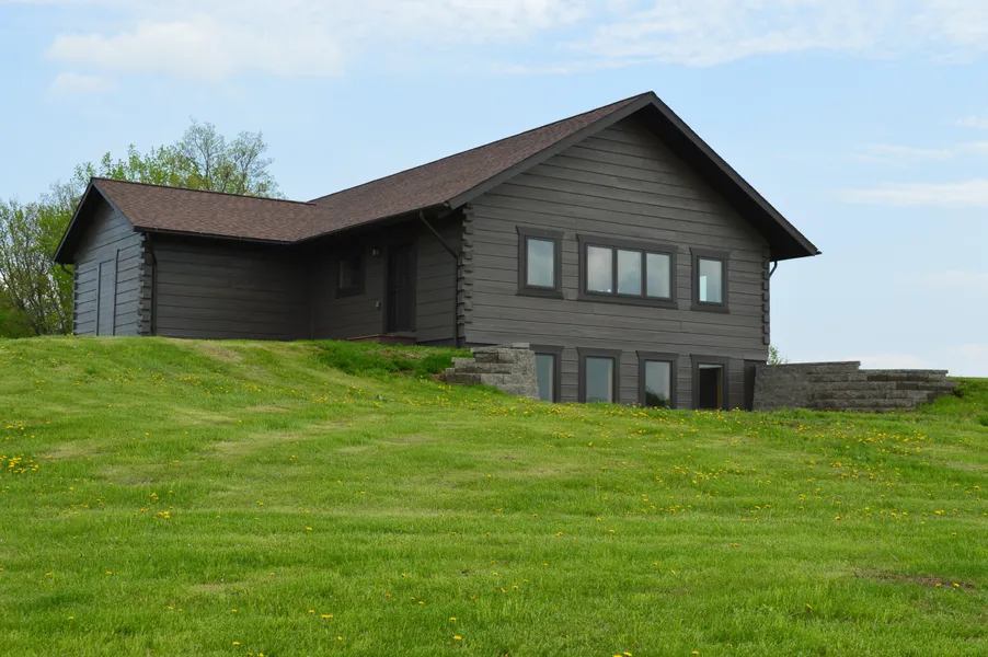 Custom Log Home with 2,232 square feet of Main Level living space on 1.33 acres with panoramic countryside and Mississippi River valley views!