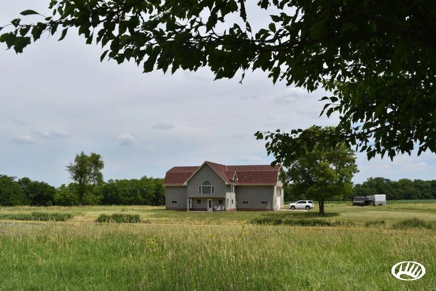 One of a kind custom designed and built shed home. It is hard not to want to make this one your own as you pull up the driveway. This beautifully designed home is in the most perfect spot. A ¾ acre stocked pond sets just beyond the front porch and all other sides are surrounded by crop fields, pastures and a creek. All of which you can see well from the 16-foot-high second story windows. It's obvious as you look around that the owners put a great deal of time and effort into planning the construction. They even included a spot for an elevator to be added for future use. The structure is built on 6 inches of concrete with in-floor heat plumbed and set up into 3 zones for wonderfully comfortable and efficient heating. The subfloors are lined with 50-year plywood and the roof has 50-year shingles. The possible living space is currently in excess of 5,500 sq. feet with the option to add more over the garage. The garage currently has 15 feet 9-inch ceilings. A 75-gallon water heater is already installed. This property has the potential to be your dream home and if you farm or would like to start farming there is an option to purchase the additional 58.88 +/- acres attached to this property. 51.6 +/- of those acres being class A tillable with a PI index of 134 m/l. Great income potential as well as country living at its finest on this property. You must see this one to fully appreciate all that it has to offer. Call today for a private tour.