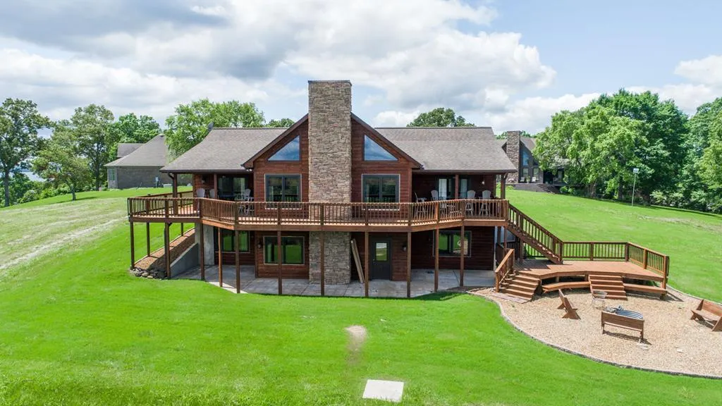 This custom-built beautiful home sits high on a hill situated on 6+ acres overlooking KY Lake and has a breathtaking panoramic view! From the moment that you enter and take in the architecture, that includes the vaulted wood ceilings to the stone floor to ceiling fireplace, you are in awe. There are 6 bedrooms and 4 full bathrooms. The kitchen has been updated to include stainless appliances, new cabinets and counter tops, backsplash plus a breakfast bar. Hardwood floors are throughout the main level which also features a large master bedroom and bath, which has a new walk-in shower. An additional bedroom is on the main level with another full bath. There are 4 bedrooms in the basement with 2 full baths and a cozy den with a fireplace. There is a two-car attached garage and another garage area in the basement. From the wraparound deck you can see the Paris Landing bridge to the Wildlife ...