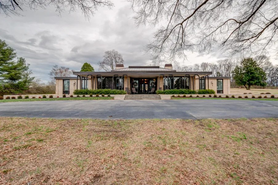 Perfectly located this striking home resonates with the best of contemporary architecture while resting on more than 133 private acres. Step from the wide and welcoming front porch through the elegant double doors and you'll know you've arrived someplace truly unique. You'll immediately be greeted by a breathtaking 14 foot high coved ceiling unfolding above the generous front foyer, leading to your choice of ample spaces for entertaining. Built-ins abound allowing you to place all of your treasured belongings on display making this home your own at every turn. When the moment comes to show off your culinary skills, you'd be hard-pressed to find a more well-designed kitchen, complete with a substantial island, a built-in bar for easy serving or quick meals and a gourmet stove ready to handle any menu.