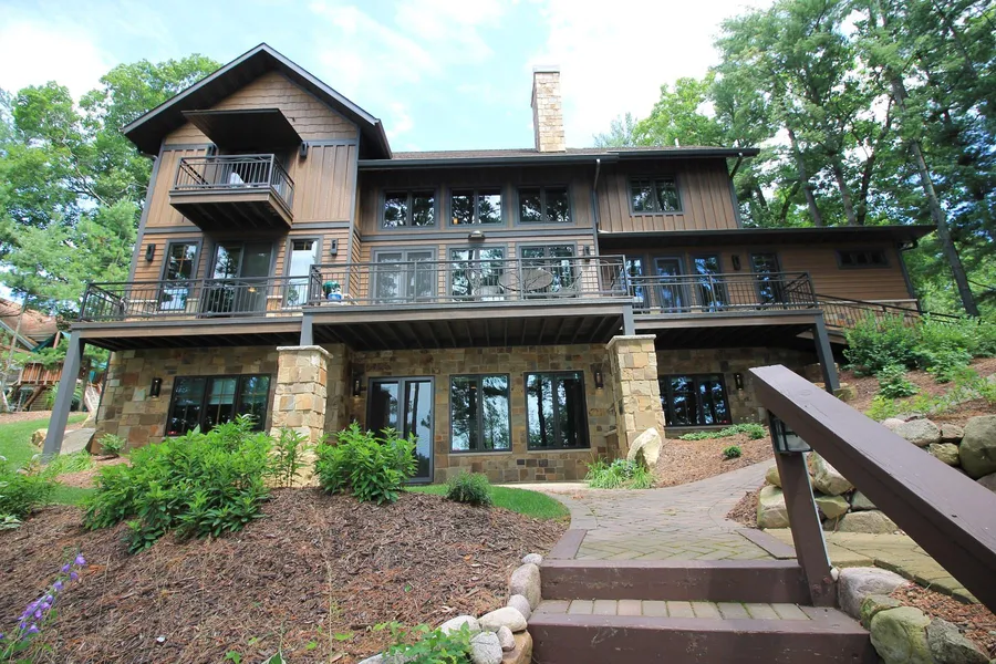 The home features 5 bedrooms, 4.5 bathrooms all outfitted with granite counters and Kohler fixtures. The open living plan welcomes you with a 2 story stone gas fireplace that commands your attention. The stone details are incorporated throughout the inside of the home as well as the entire exterior creating a warm and inviting setting to enjoy all that lake living has to offer. Whether you enjoy the lake from the Deck or the Dock, or splashing along the 90 ft of sandy frontage, this is the ideal ...
