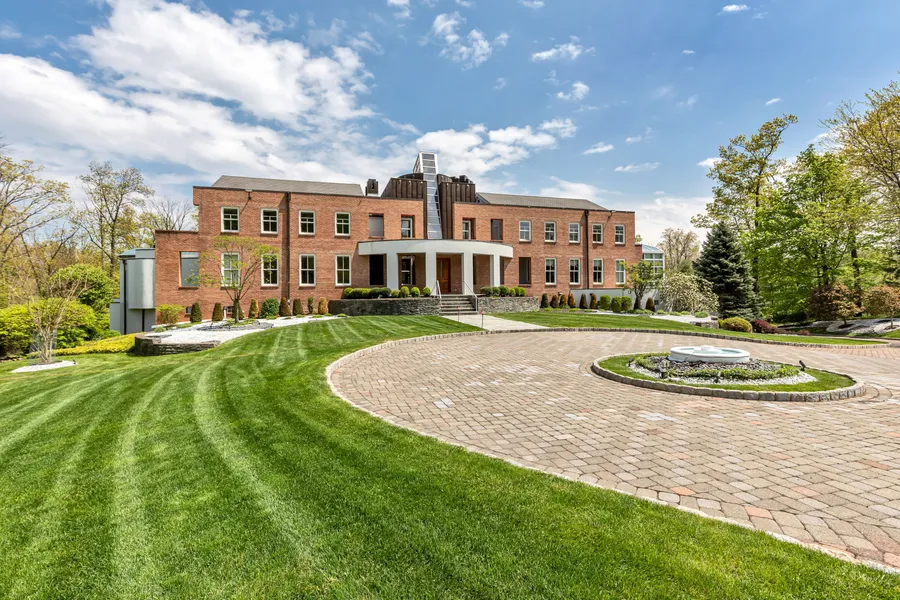 Welcome to this magnificent, custom designed contemporary property. Located on 7.5 acres, this luxurious and private retreat includes an indoor pool, fully lighted and fenced tennis court, two-story waterfalls, pond and gazebo. A one-of-a-kind grand foyer welcomes you with soaring ceilings, distinctive butterfly staircase and custom chandelier. Throughout the home is granite flooring with granite trim and wood inlay, unique molding on the walls and ceilings, and a lighting system designed by Creston. The Estate's 8 en-suites and 4 half baths provide plenty of space for guests. The primary suite is a true retreat featuring a spa-like bathroom, sauna, walk-in closet, study with a gas fireplace, and direct access to the gym and pool below. The kitchen is a chef's dream with top of the line appliances, a massive island, custom exhaust hood, 6-burner stovetop, and a prep sink. The great room, with dramatic ceiling height and graceful bridge to the library, features a 6' wide granite gas fireplace with marble hearth. Elevator to all three levels. The lower level of the property, designed for entertainment, has a large recreation room, wet bar, dance floor, media room, bedroom, full-service kitchen, wine cellar, and fitness room leading to the indoor pool and spa. This level has direct outdoor access, which seamlessly allows for indoor/ outdoor living. Don't miss this opportunity to own an all-inclusive resort like property!