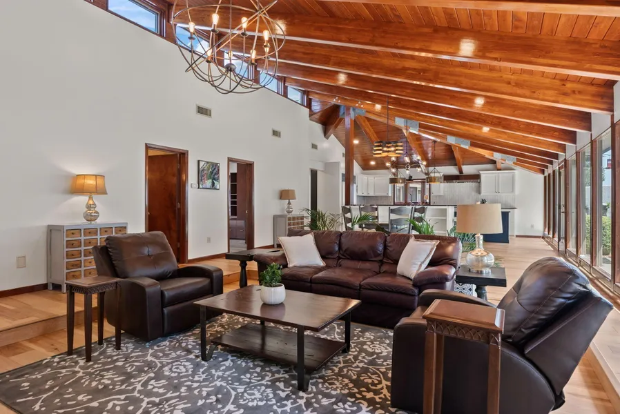 Welcome to your private, gated one-story NAA retreat on a private lot with breathtaking views! This gated home offers 4 beds, 5 baths and 4 car garage spaces-a rare find. Rich with character, this home features vaulted wood ceilings, new engineered hardwood floors, and floor-to-ceiling solid wood windows framing stunning mountain views. The gourmet kitchen boasts professional-grade appliances, custom pantry, and a stylish coffee/wine bar. Enjoy two serene courtyards, a lushly landscaped yard with mature trees, and a secluded backyard. Recent upgrades include a new metal roof, dual tankless water heaters, water softeners, and radon systems. Schedule your tour today!