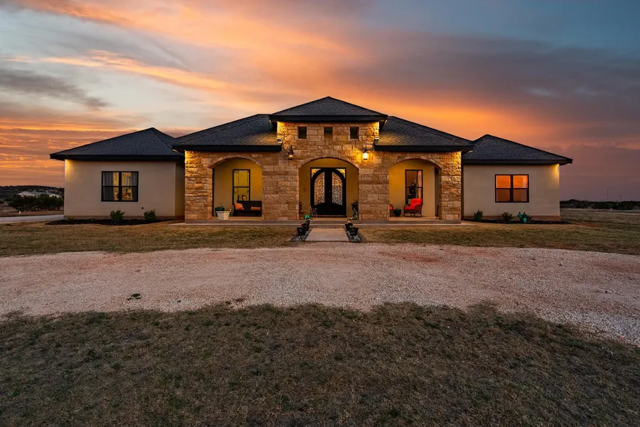 **Stunning Custom-Built Home on 15 Acres with Endless Amenities!** Located on 15 sprawling acres in the sought after Jim Ned ISD, this exceptional custom-built home offers 4 spacious bedrooms, 3.5 luxurious bathrooms, and an office, and a game room, providing ample space for both family living and entertaining. The formal dining area is perfect for hosting guests, while the open-concept living space with 11-foot ceilings and a wood-burning fireplace creates a welcoming atmosphere. The chef's kitchen is a dream with double ovens, a gas cooktop, granite countertops, and a kitchen island with storage on both sides. A large walk-in pantry provides even more convenience. The primary suite features a cozy sitting area, his and her walk-in closets, a soaking tub, a beautifully tiled shower, and separate vanities with great storage. The guest wing is thoughtfully designed with 3 bedrooms, 2 bath...