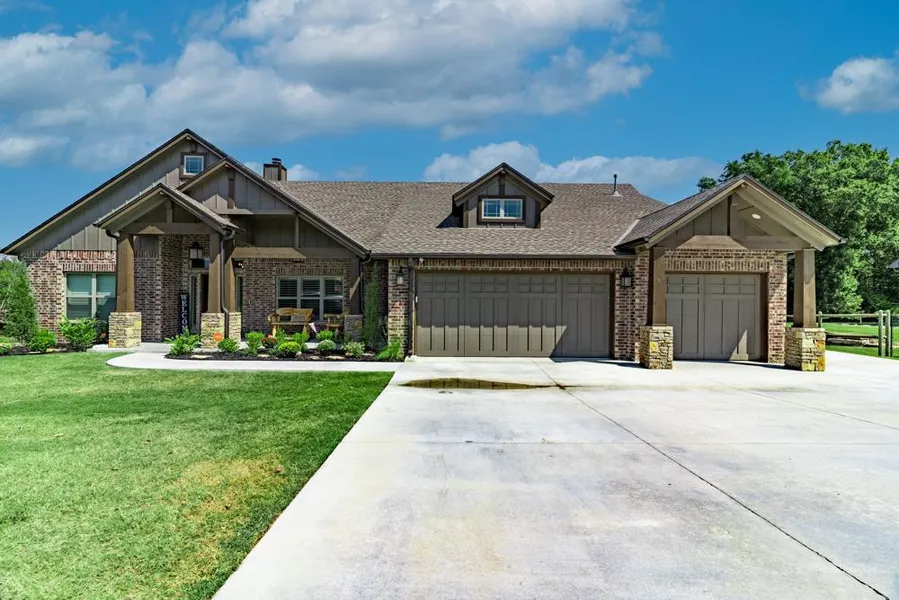 The 3 car garage allows for parking and storage space. From the back porch you will be able to relax on the patio while watching TV or listening to the sound of the fountain in the pond...