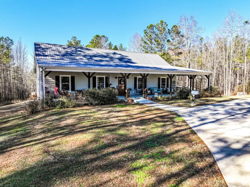 Situated on 5 +/- acres, this 3-bedroom, 2-bathroom home combines modern amenities with rustic charm. The 1,680 sq. ft. main level features stunning hardwood floors and beautiful tongue-and-groove ceilings, adding warmth and character to the home. All doorways are wheelchair-accessible, ensuring ease of movement and comfort for everyone. Enjoy the outdoors from the large, covered wraparound porch or the enclosed back porch/sunroomperfect for relaxing or entertaining. Inside, a cozy wood-burning fireplace with a blower serves as the focal point of the living area. The property is equipped with a backup generator that powers the entire house, providing peace of mind during power outages. The large, 1,680 sq. ft. unfinished basement, with exterior access, offers ample space for storage, hobbies, or future expansion. A 30’ x 40’ metal shop with power and a dirt floor is ideal for workshop or storage needs, while an additional exterior shed with dual lean-tos provides even more space for tools and equipment. With its mix of functional features and quiet rural setting, this property offers a rare opportunity for comfortable country living. An additional 22.91 +/- acres are available for purchase for interested parties. All showings are by appointment only. For more information or to schedule a private viewing, please contact Cal Hardie at (770) 296-2163 .