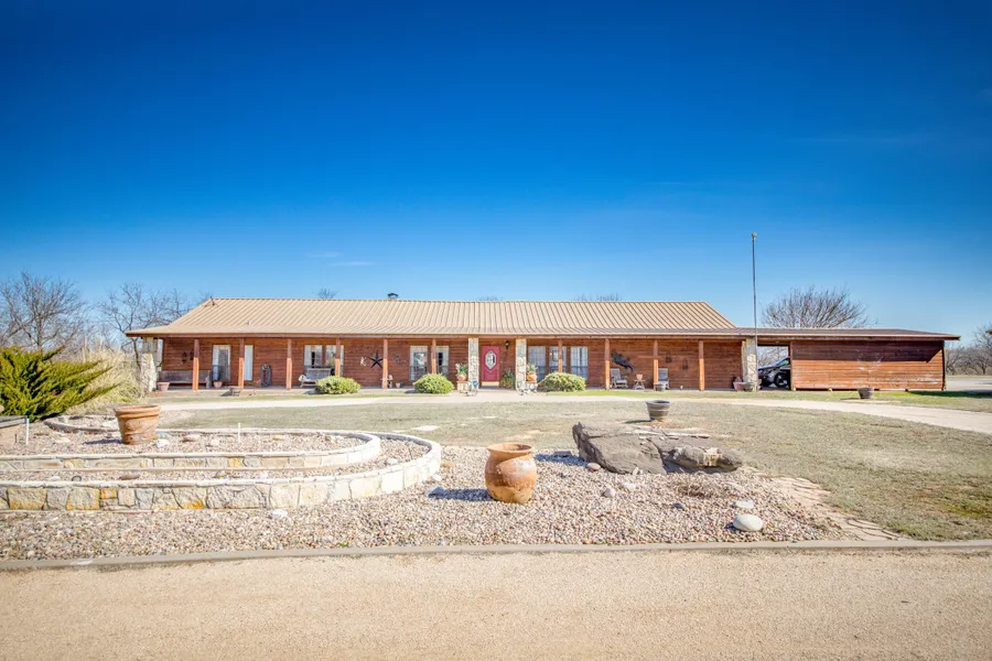 Country living close to town. Large custom home on 50 acres. Private & secluded & only 3 miles east of Henrietta. 3 bedrooms, 3 baths in 3600+ sq. ft. This home features a rock fireplace in the living room, custom built-ins, large laundry room and a formal dining room. In the kitchen is the breakfast nook, the granite counter top & bar and custom cabinets. Wrap around porch, 2 car carport and a heated/cooled shop building. A barn and 50 acres of trees and lots of wildlife. More acreage available, adjacent to 145 acres.