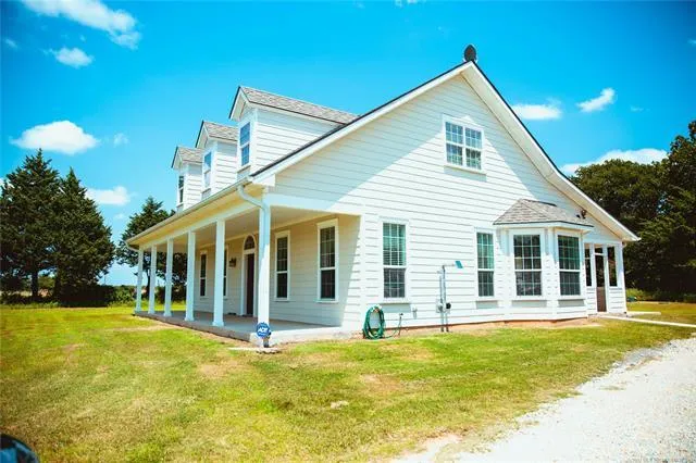 Memories are waiting to be made in this custom-built home. Downstairs flows in a circle giving easy access to every room. 2 large bedrooms upstairs, 1 is wired with speakers & HDMI hook up for your projector. Upgrades include: 2x6 walls, post tension slab, wired alarm system, multi-room speaker system & USB power plugs. Pellet burning wood stove means no cutting & hauling in wood. Enjoy morning coffee on the back patio or spacious front porch. 6+ acres of quiet country is ready for you to call home.