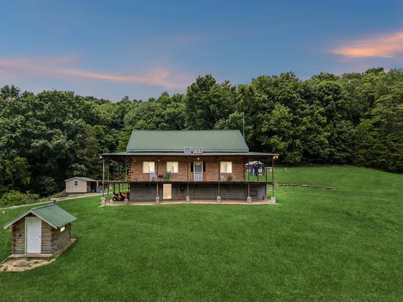 Red cedar log home on 8.1 acres built in 2006 & located on the Murfreesboro side of Cannon County. This home has approximately 1,742 sq ft per professional measurement with open floor plan. 2 bedrooms, 1 bath & large loft. Home has bamboo flooring on main level and carpet on stairs and loft. Home also has a wrap around porch, 2 car carport, 12 x 20 shop and a 18 x 35 RV carport with 30 amp service. Property has a well but sellers have a 2000gal water tank and get water at Woodbury water dept for 1 cent per gallon. Home also has a 12 volt solar system.