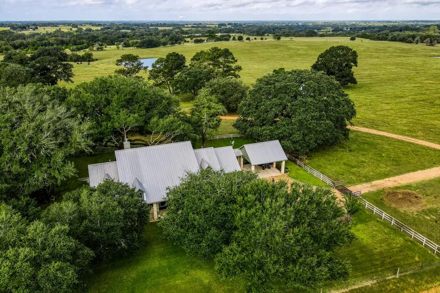 Nestled among some of the grandest 100-year-old oaks is this Texas hill country ranch...better known as 8 Oaks Ranch. This 72-acre Texas ranch offers everything you are looking for, from the 370-foot elevations showcasing miles of amazing views of Colorado County, to the exquisite single story custom ranch home with picturesque views from every window. This ranch is located on an old country road that sees very little traffic with views & sounds of the old west railroad off in the distance. This is truly a place to get away & have the peace and quiet you have been looking for. It offers three ponds, a working windmill, ag exemption, barn with water and electric, and horse stalls. There is the benefit of having two entrances making it easy to build another home or divide later. Central to Houston 1:30, Austin 1:44, Round Top 25 min., Fayetteville 14 min. Bellville 33 min. Colombus 26 min. Brenham 37 min. College Station 1:23 gives you lots of options to explore the Texas lifestyle.