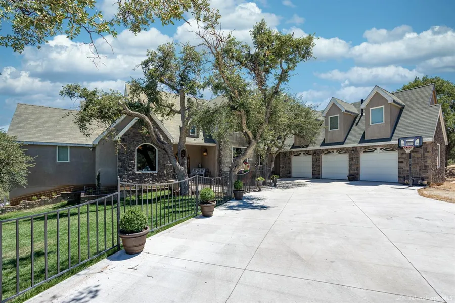 Enchanting! Surrounded by Mature Oak Trees with secluded decks & private balconies sits an incredible 5B/6B custom residence on approx 2.5 acres. Generous Kitchen - Gorgeous Walnut cabinetry compliments the polished concrete countertops, Kitchen Aid appliances, 48'' professional cooktop/griddle, large island makes for a perfect workspace.