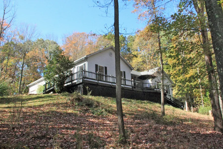 *SOLD - May 2016* So much woodsy charm & appeal, complemented by upscale construction & amenities here...easy-flow ranch living, with resort lifestyle & much more included! Don't miss this exceptional home set amidst tall trees...approximately 1.5 acres that do doubt feel & live larger! Located in the private gated resort community of Hide-A-Way Hills, naturally near the famous Hocking Hills since 1961! Plenty of storage here, from the 3-car garage in to multiple walk-in closets and down to the walkout lower level enclosed spaces. Step inside to a wide & welcoming foyer, w/den & WOW private owners' suite retreat off to one side , and on in along the gleaming hardwood flooring to the open dining area & kitchen w/breakfast bar, pantry, & recessed lighting. Just steps away is grand gathering family room, with multiple windows, plus custom wood & mantel surround for the brick-hearth firepla...