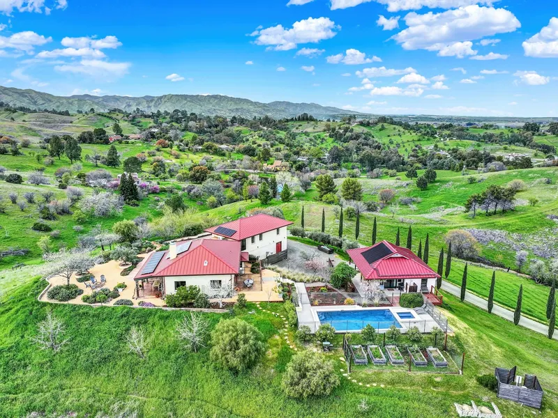 Stunning Custom Straw Bale Estate with Guest House, Olive Orchard, Pool, and Workshop. Nestled on over five scenic acres in Winters, this exceptional estate blends sustainable luxury with breathtaking vineyard and hill views. Built for efficiency, fire resistance, and comfort, the main house features straw bale construction, while both the main home and private guest house include metal roofs, solar power, and radiant floor heating. An open-concept design creates seamless indoor-outdoor living, with expansive living and dining areas leading to a pool, hot tub, fire pit, and multiple entertaining spaces. An outdoor shower offers added convenience for poolside relaxation. Beyond the home, enjoy a temperature-controlled wine cellar, generous garage space, and a spacious workshop ideal for creative projects or storage. The charming olive orchard enhances the property's natural beauty, while raised garden beds provide an opportunity for farm-to-table living. Enjoy starlit evenings on the patio, surrounded by rolling hills and peaceful countryside. Its prime location offers rural serenity just minutes from downtown Winters' acclaimed restaurants, wineries, and shopping. Experience the perfect blend of sustainability, comfort, and elegance. Schedule your private showing today!